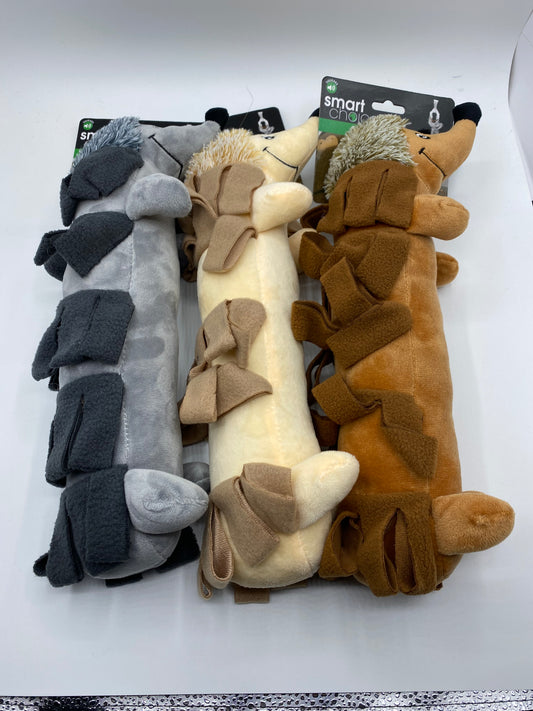 Hedgehog Snuffle Dog Toy Approx 35cm Long in Three Colours Light Brown, Dark Brown and Grey