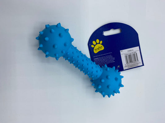 Rubber spikey dumbbell dog toy, various colours
